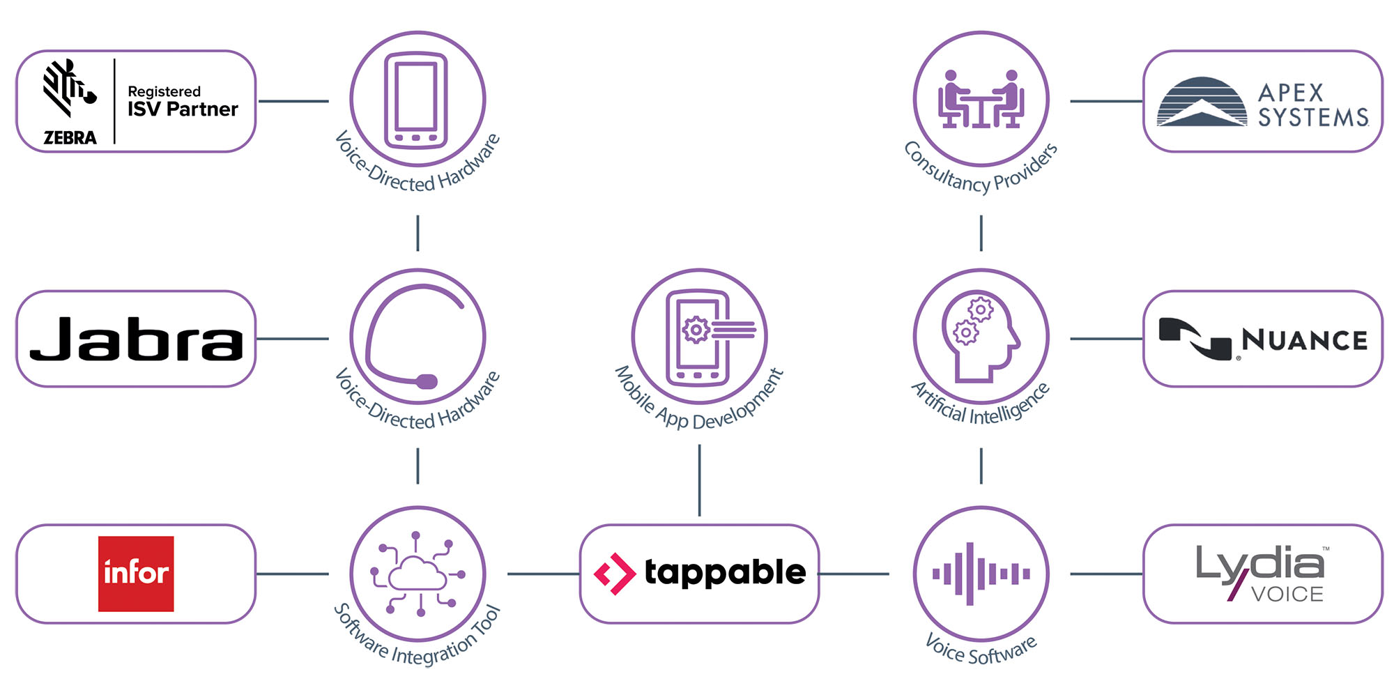 These include Infor, Apex Systems, Jabra, Tappable, Zebra Technologies, Nuance and Lydia Voice, a solution of the EPG Ehrhardt Partner Group, a global leader and expert in voice-directed solutions.